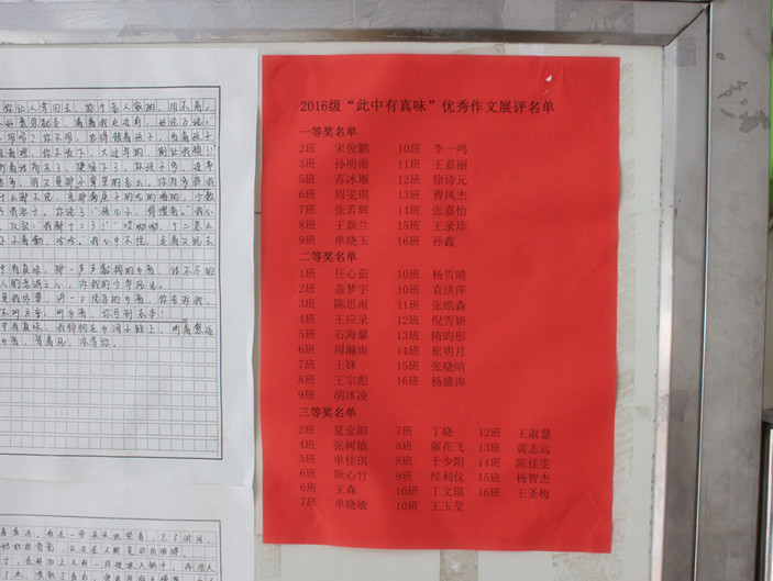 2016级以“此中有真味”为题,进行了征文比赛,同学们自定立意,文体特征鲜明,书写规范,经过选拔,获奖同学如下: