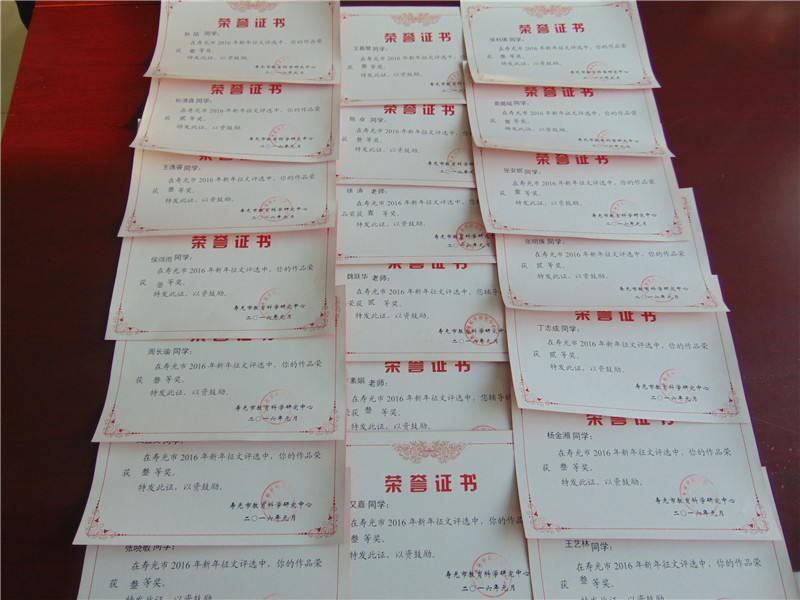 征文获奖捷报传,语文教学硕果甜。在我市举办的“高中新年征文比赛”中,我校师生积极参与,创作了大量优秀作品,取得了优秀成绩,充分展现了我校师生优异的文章才情。本次比赛,我校共有17位同学分获一二三等奖,徐涛、魏跃华、李素娟、郑玉莹等四位老师分获一二三等优秀辅导奖,同时,我校也荣获“集体组织奖”前三甲。