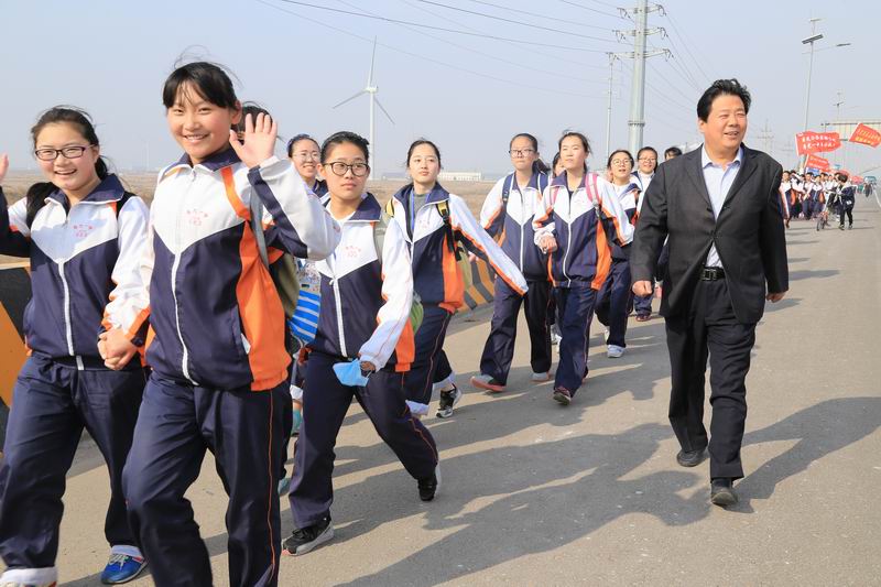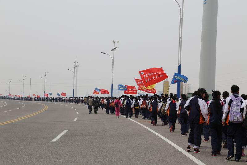 4月12日,阳春四月。为丰富课余生活、暂别紧张的学习,让青春放歌,让心灵与自然交融,践行环保理念、感悟海洋文化,让学生在亲近海洋、感受大海美的同时体会同学之间纯洁的友谊和浓厚的人文气息,进而培养学生吃苦耐劳精神和团队合作精神。我校全体师生,近1300多人参加了 “拥抱海洋·青春励志·环保行”为主题的远足拉练活动,让我校学子的奋发向上精神在足下传递。拉练全程长60华里。对增强学生体质,磨炼学生意志,培养学生吃苦精神,培养良好的师生关系,强化集体意识、纪律观念和环保意识有重要的现实意义。