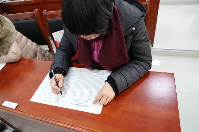 经过两个月的精心准备,我校全体任课老师参加教师业务能力提升考试在高二报告厅鸣锣开考。按照规定的时间,参加考试的任课老师到贴着自己考号的课桌前就坐,等待着监考人员分发试卷、答题卡、草稿纸。试卷分发完毕,随着一声哨响,正在审题的各任课老师立刻抓起自己的笔迅速的写起了答案。研究高考题领导小组的付成波校长、张福林副校长则认认真真的做起了监考员。笔者到现场采访时看到这一幕感觉既有趣又敬佩,有趣是因为看到平日里在课堂上神采飞扬的老师像学生一样紧张地答题,敬佩则是因为我校老师全心全意的为学生负责甘愿重新做考生。