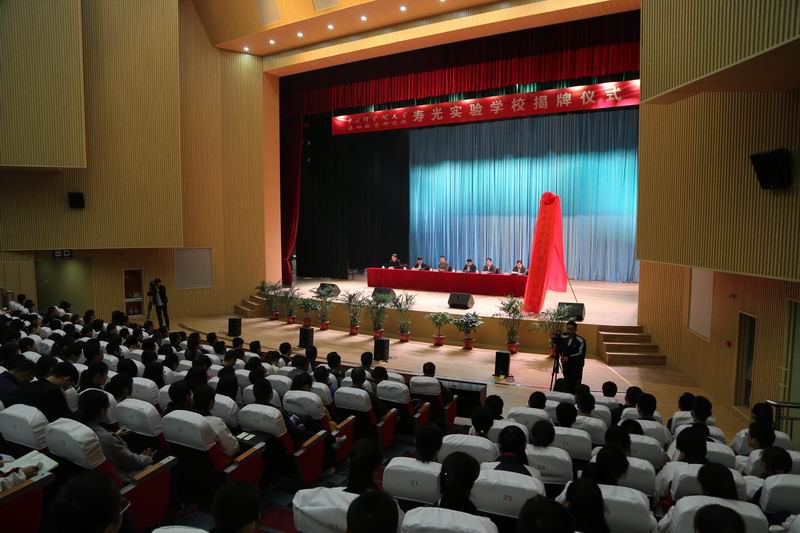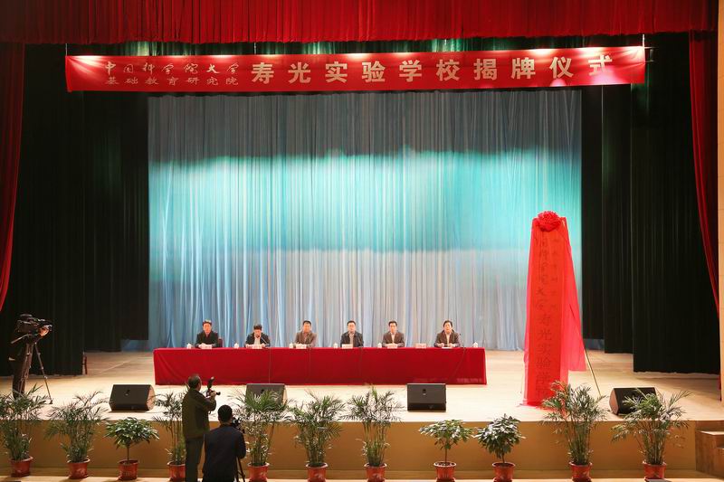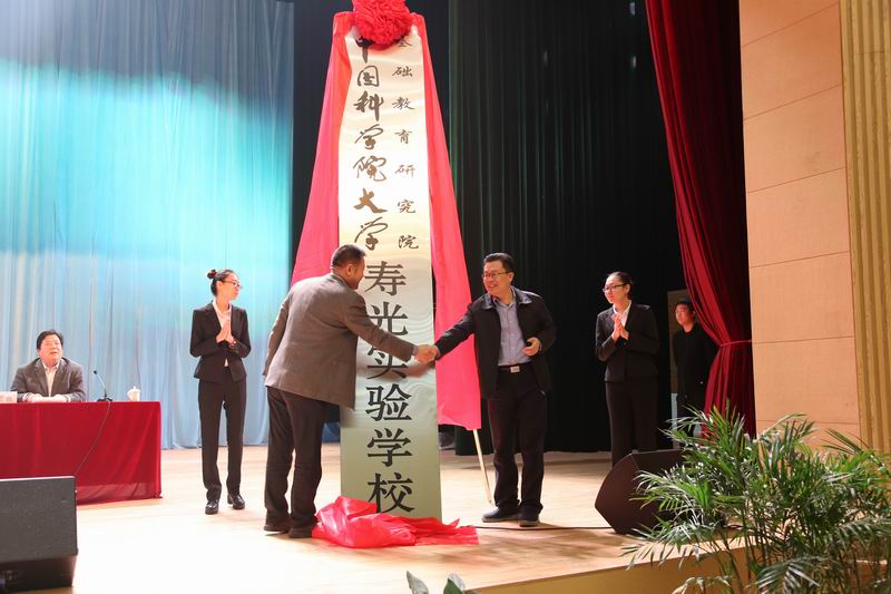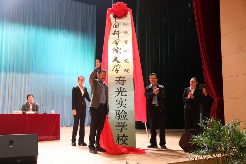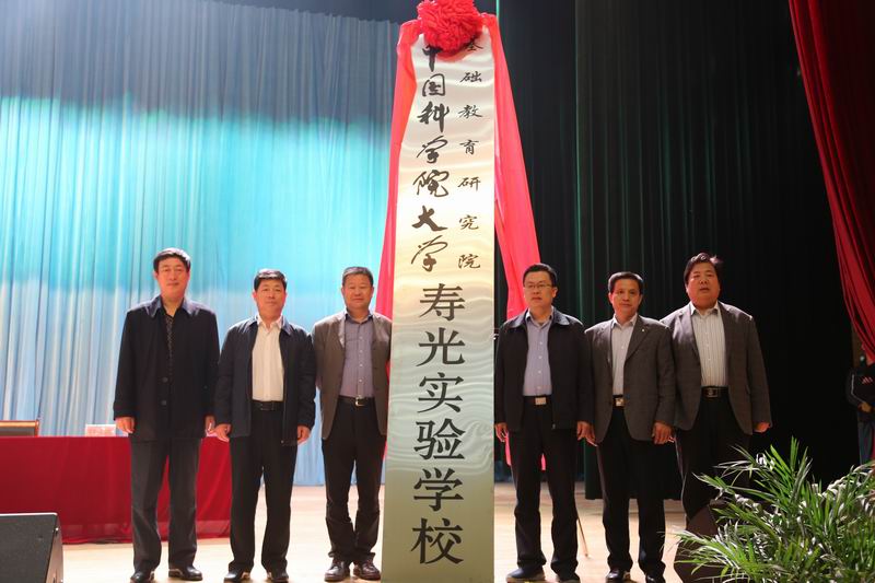 10时许,中国科学院大学基础教育研究院寿光实验学校揭牌仪式在文化中心礼堂正式举行。我校与中国科学院大学基础教育研究院“牵手”,极大的提升了我校乃至全市的基础教育发展水平和竞争力。中国科学院大学博士生导师、基础教育研究院执行院长王金战教授和寿光市政府党组副书记、羊口镇党委吴广兴书记共同为新学校揭牌。寿光市教育局李玉明局长、寿光一中王继林校长、我校付成波校长出席了揭牌仪式。