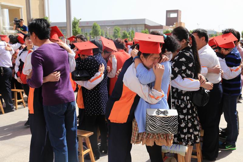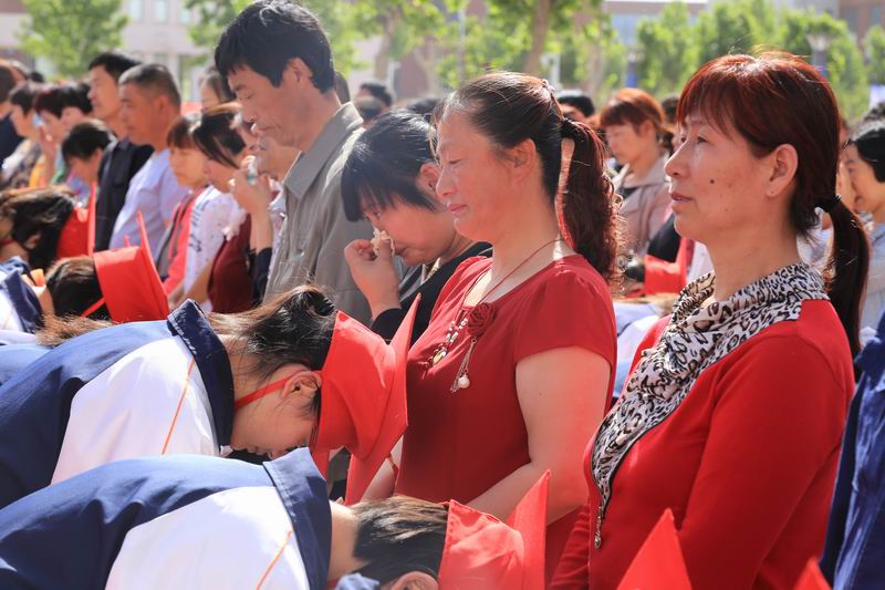 5月13日上午,天青日艳,惠风和畅,我校在和谐楼广场隆重举行了2015级“相遇渤海,点亮青春”十八岁成人礼。学校领导班子、2015级全体学生和家长参加了成人礼,2016级部分同学自愿组成志愿者小分队为活动提供帮助。网易新闻全程直播,截止到13日上午10时吸引了超过50000名网友观看。 成人礼在庄严肃穆的升旗仪式中拉开帷幕,升旗仪式后,大会进行了隆重的冠礼仪式,家长们亲手为孩子戴上成人帽,送上青春成长的美好祝愿;学生向家长三鞠躬行拜谢礼,凝视父母的眼睛,并与家长深情拥抱,一句“爸妈,我爱你”喊出最真挚、最感人的心声。随后,在学校领导的引领与祝福下,家长与学生们手牵手通过成人门,庄重的向全世界全部2015级的全体同学们长大成人,每个人脸上都写满了庄严和感动。