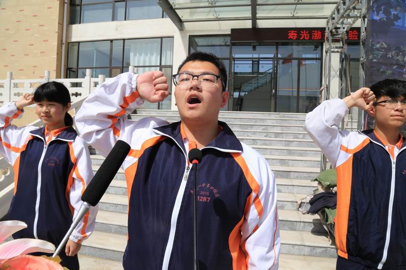 跨过成人门,迈向了成熟,也迈向了责任,为勉励同学们明确公民责任,遵纪守法,成人成才,学校领导为学生颁发了《中华人民共和国宪法》读本。家长与学生代表共同朗诵《十八岁畅想曲》,饱含深情的诗歌诵出了浓浓养育恩、殷殷师生情和拳拳报国志,感动了所有人。接着,在高二学生代表卫建华的带领,全体同学举起右拳,许下了青春誓言——弘扬红柳精神,意志坚韧不拔;三载努力拼搏,笑傲二零一八;践行海洋文化,成就博大胸怀;修成文华斐然,达致人生臻美;难忘父母恩情,功成才能回报;牢记师长教诲,勤学不负厚望;我是渤海学子,当以学校为荣;铭记求真崇善,理性创美尚勇;梦想照亮前方,行动成就未来;以我奋斗青春,助力中华崛起!铮铮誓言响彻校园,表达了学生们奋发向上、不忘恩情,不忘社会责任、勇攀人生高峰的坚定信念与决心。