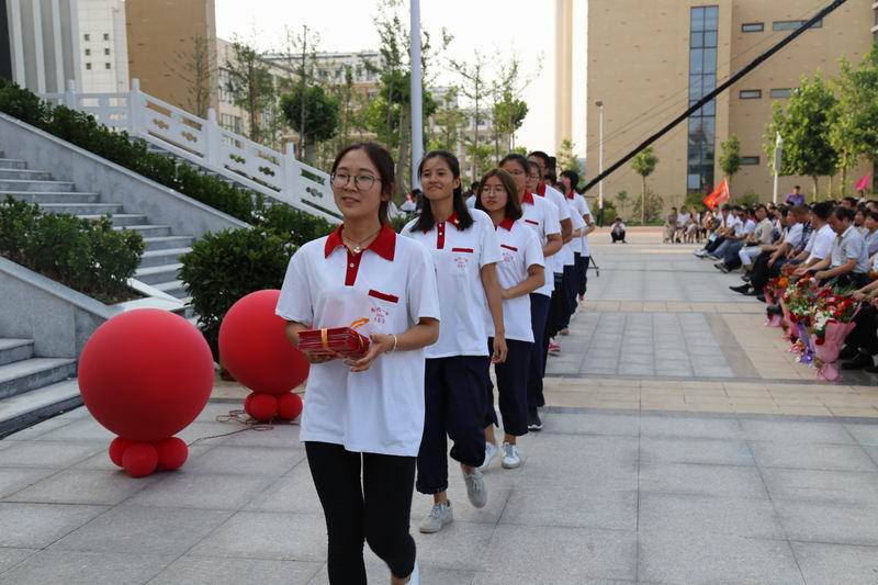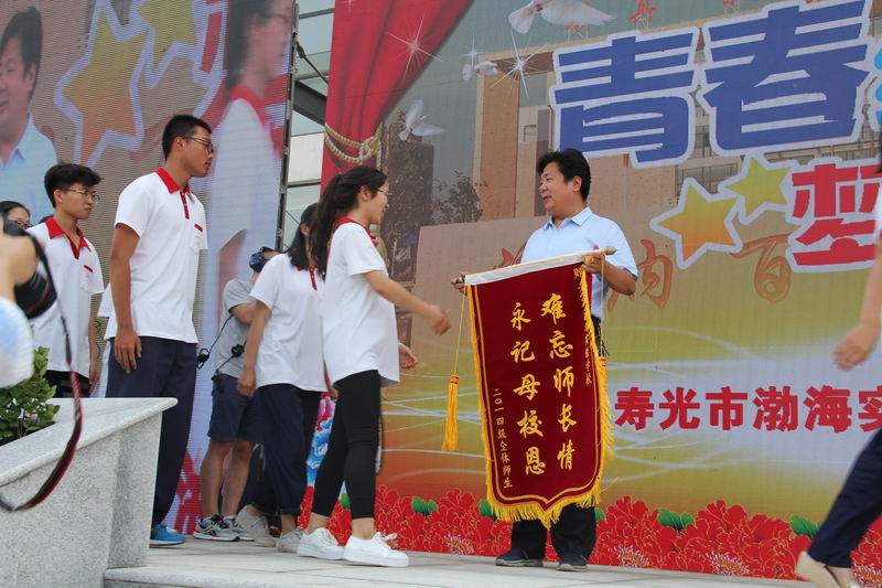 即将远行之际,付校长代表学校做了发言。他深情的说,感谢2014级的全体同学和家长能来参加此次典礼,全体老师要帮助同学们报好志愿;从三年前的第一次考试全校只有几人过重点本科线,到现在的重点本科上线率超过百分之三十、普通本科上线率超过百分之七十、至少70人可以报考211和985大学,老师和同学们付出的太多。他祝福同学们前程似锦,叮嘱同学们常回来看看!