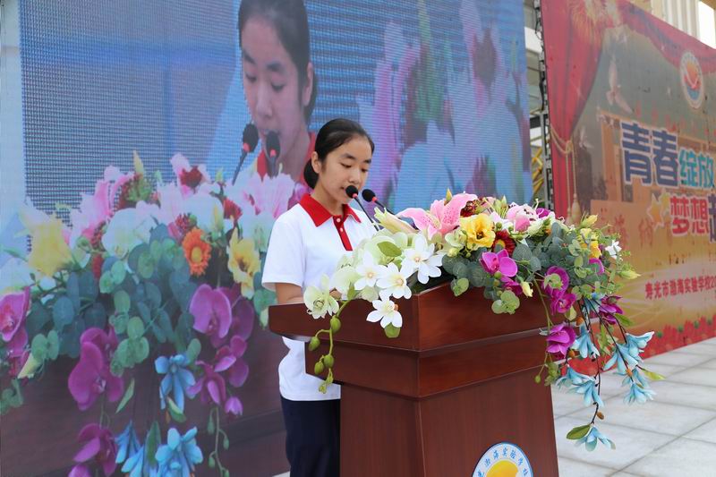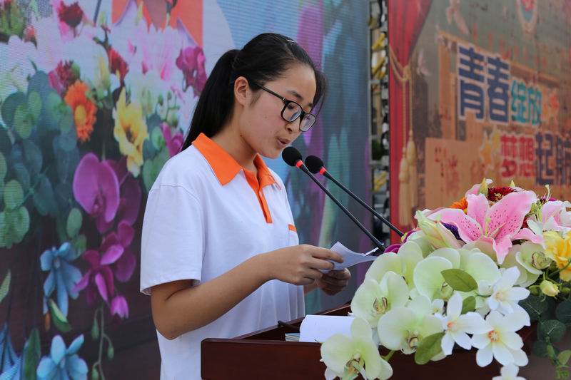 三年高中生活的点点滴滴在屏幕上划过,历历在目,触动着每个人。伴随着雄壮的国歌,张福林副校长宣布典礼正式开始。三年前入校、慢慢成长、备战高考,一幕幕的过往展现在眼前,拨动着同学们的心弦。高三学生代表王嘉慧同学的毕业感言表达出了同学们对母校和恩师的祝福和感恩。紧接着父母们录制的祝福视频让同学们眼含热泪。高三同学为老师们献上鲜花,师恩如山,师爱似海。在动人的旋律中,学子们怀着感恩的心把最美丽的鲜花献给了最亲爱的老师,一个个深情的拥抱,一句句真诚滚烫的话语,让在场的老师红了眼眶。唐美然老师代表高三全体教师为同学们送上毕业祝福,希望他们有一个如花似锦的前程。短片《老师祝福你》让同学们欢呼鼓舞,气氛达到了高潮!