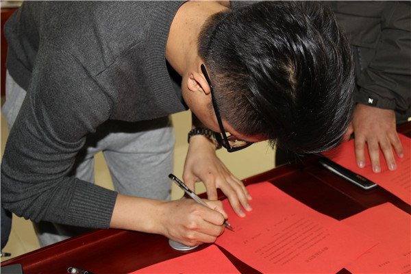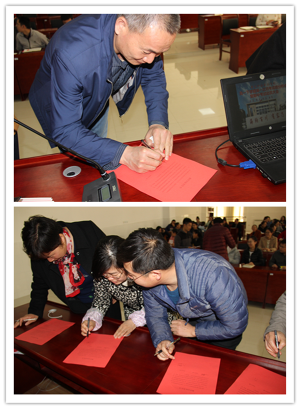最后由各备课组长和班主任上台重申期中目标人数,并签字表决心。