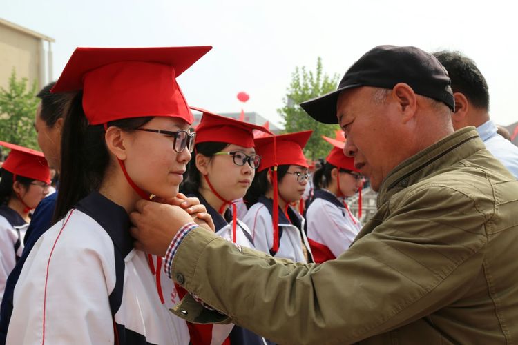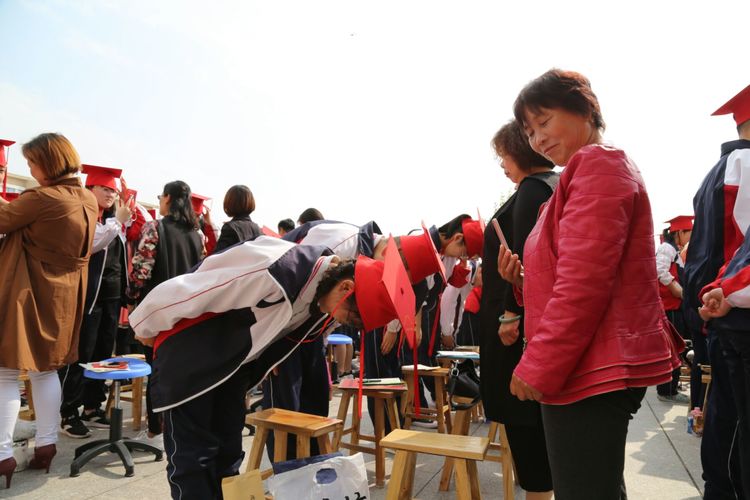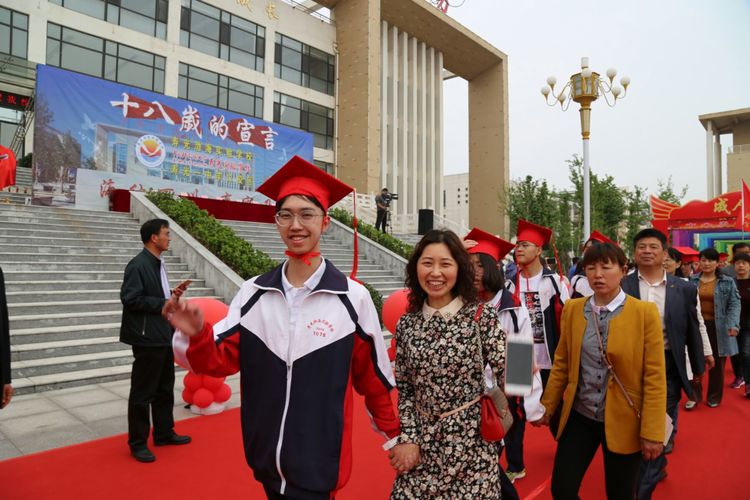 成人礼在庄严肃穆的升旗仪式中拉开帷幕,升旗仪式后,大会进行了隆重的冠礼仪式,家长们亲手为孩子戴上成人帽,送上青春成长的美好祝愿;学生向家长三鞠躬行拜谢礼,凝视父母的眼睛,并与家长深情拥抱,一句“爸妈,我爱你”喊出最真挚、最感人的心声。随后,在学校领导的引领与祝福下,家长与学生们手牵手通过成人门,庄重的向全世界全部2016级的全体同学们长大成人,每个人脸上都写满了庄严和感动。