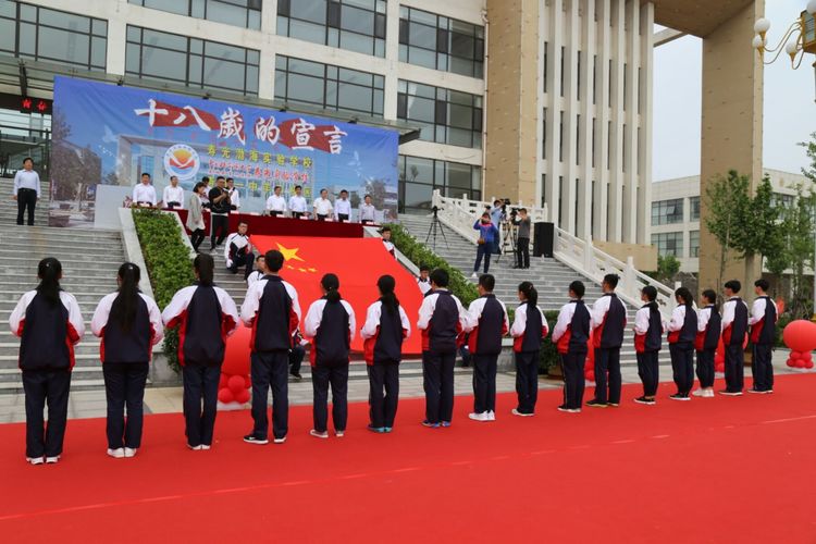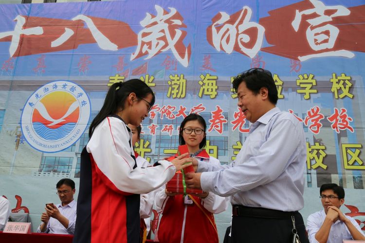 5月6日上午,连日的阴霾一扫而光,霞光照遍校园,惠风微微吹动柳梢,寿光渤海实验学校迎来了2016级成人礼仪式。学校领导班子、2016级全体学生和家长参加了成人礼,2017级部分同学组成志愿者小分队为活动提供帮助。网易新闻、目睹直播、寿光电视台全程实时直播,十几个机位全方位的向网友展示着活动的每一个细节,吸引了来自全国各地的二十余万网友观礼。