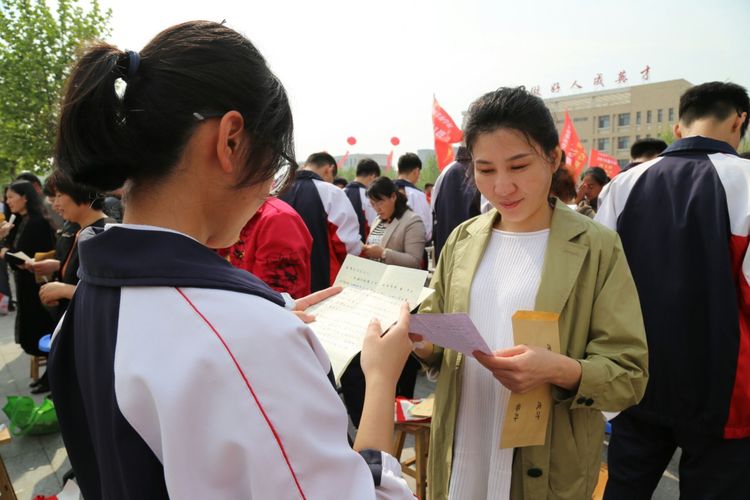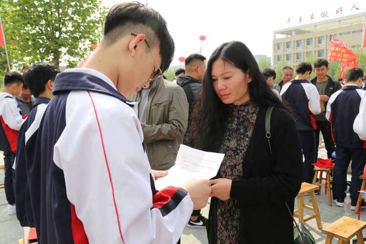 付成波校长庄重宣读成人礼贺词,他向迈入成人行列的同学们表示祝贺,送给同学们三句箴言“懂得感恩是获得幸福的法宝,内心善良是通往幸福的捷径,扛起责任是人生幸福的源泉”,并提出希望同学们做一个成熟的青年,对自己的人生负责,希望高二的全体同学们努力拼搏 ,在2019年的高考中一飞冲天。随后,各班班长将《写给二十年后自己》的一封信郑重交给学校。活动结束后,各班组织召开了家长会,对学生的成长和责任做了进一步的交流。