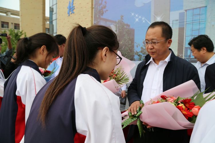 跨过成人门,迈向了成熟,也迈向了责任,为勉励同学们明确公民责任,遵纪守法,成人成才,付成波校长为学生颁发了《中华人民共和国宪法》读本。各班团支书代表全班同学向班主任老师敬献鲜花,同学们庄重的向班主任鞠躬致谢,感动了所有人。接着,在高二学生代表齐畅的带领,全体同学举起右拳,许下了青春誓言。