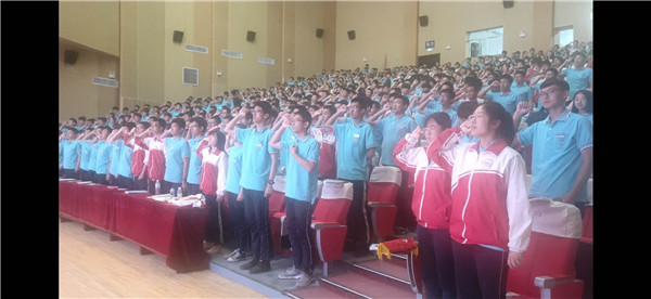 第四项,由杨守刚同学带领全体同学宣誓。没有经过拼搏诠释的青春是苍白的,没有经过奋斗考验的青春是遗憾的,让我们喊出心中的豪情吧!