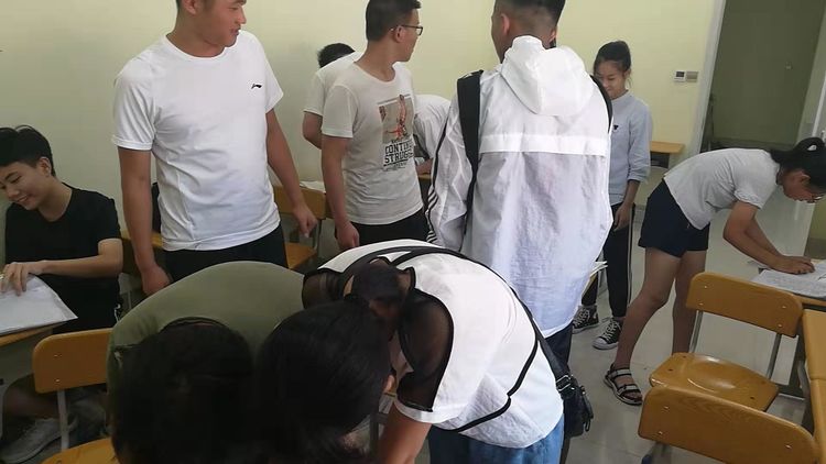 8点,同学们和家长们已陆陆续续过来,找到位置,等待老师们收取作业