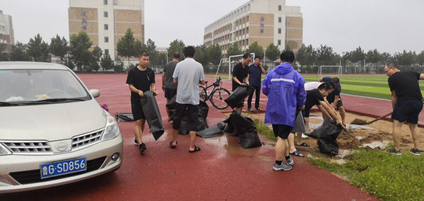 受台风“利奇马”的影响,山东多地遭遇强降雨天气。潍坊地区出现大暴雨,局部地区出现特大暴雨。近两天全市平均降雨量超过260mm,受其影响,寿光多地产生洪涝灾情。寿光渤海实验学校立即组织学校干部教师积极参与帮助群众撤离及安置工作。学校第一时间组成以付成波同志为组长的32人恶劣天气应急抢险小组,小组成员保证24小时蹲守岗位。同时安排后勤人员准备学校临时安置点,以备安排就近受灾群众。付成波校长对防汛工作做了全面细致安排,各部门分工明确并积极落实各项举措,确保校园不出任何问题。