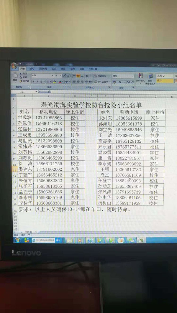 8月9日,寿光市教体系统召开了防范应对台风“利奇马”的工作会议,寿光渤海实验学校立即对相应工作进行了安排部署。结合此次会议精神,学校随后迅速召开“防范应对台风‘利奇马’工作会议”,以付成波同志为组长成立32人恶劣天气应急抢险小组,小组成员保证24小时蹲守岗位。同时安排后勤人员准备学校临时安置点,以备安排就近受灾群众。付成波校长对防汛工作做了全面细致安排,各部门分工明确并积极落实各项举措,确保校园不出任何问题。