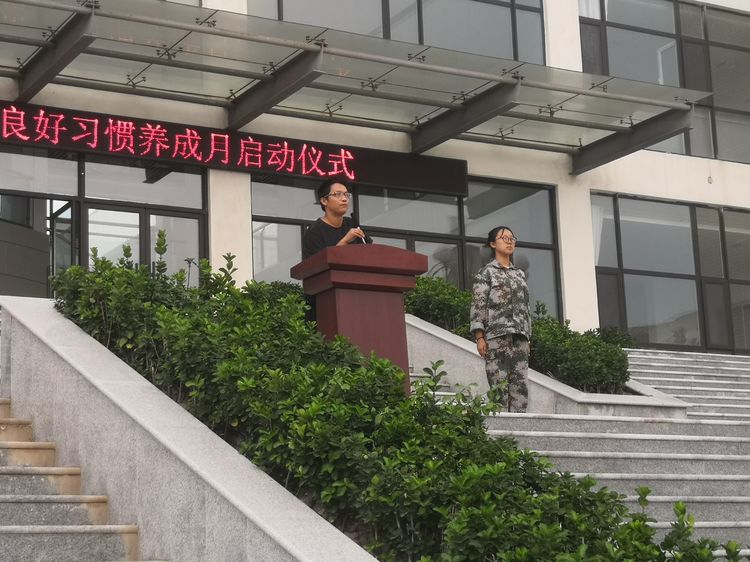 房承富校长上台与全校师生共勉,他说,困难就像弹簧,你弱它就强。在学习生活中,同学们也要一直坚持自我,不被困难打到。成为渤海实验学校的一员,我们要拥有伟大的目标,海阔凭鱼跃,天高任鸟飞。随后他在新学期良好习惯养成月中提出了几项要求。第一,养成良好的学习习惯,课堂多思考勤发言,好记性不如烂笔头,要养成做笔记的习惯。第二,养成整理笔记、及时复习的习惯,不忘初心,砥砺前行。第三,养成良好的生活习惯。第四,不断提升个人文明素养。