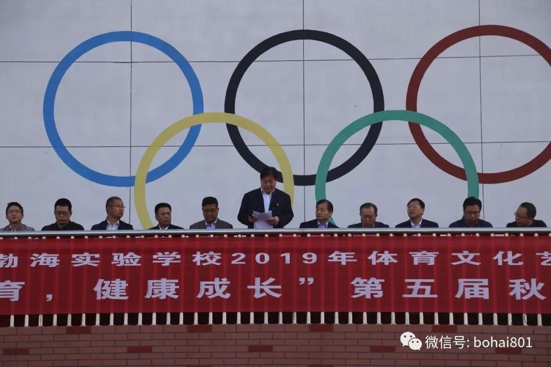 付成波校长代表大会组委会致辞。付成波校长首先对建5校年来学校迅猛发展、全体渤海实验人取得骄人成绩进行了表彰与总结,向为筹备大会的工作人员表示了感谢;对本届运动员、裁判员、全体师生提出了更高的希望和要求;希望全体师生在运动场上发扬顽强拼搏、敢为人先的精神,把这种积极进取,敢为人先的优良品质继续发扬到平日的学习与工作中去,推动学校各项工作再上一个新台阶;更希望同学们将我校“海纳百川 有容乃大”的海洋文化与“友谊第一 比赛第二”的运动精神结合起来,以包容与进取的态度面对自己的学习与生活。