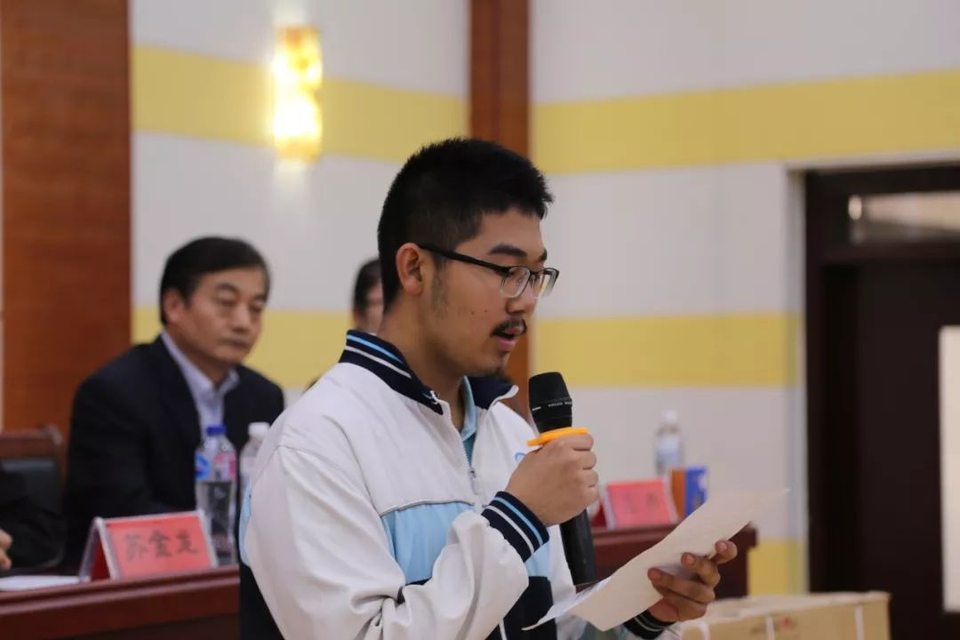 受捐赠学生代表发言,表示将不辜负丹勋教育基金会以及社会各界各位爱心人士的善行义举,将这份爱心转化为自己内在学习的动力,在未来定将这份爱心传递下去。