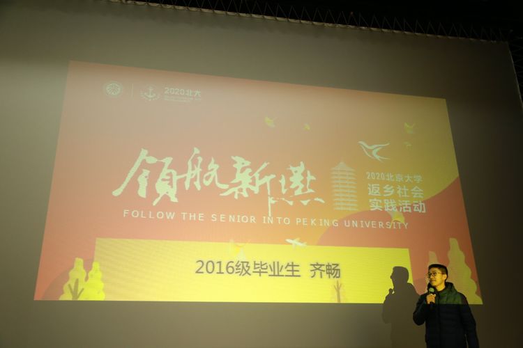 齐畅为学弟学妹介绍“学在北大生活在北大是一种别样的体验”。