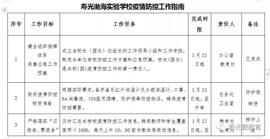 根据上级主管部门提出的疫情防控命令,寿光渤海实验学校立即组织学校领导干部召开疫情防控专题会议,决定成立由党支部书记、校长付成波任组长的疫情防控领导小组,研究制定《寿光渤海实验学校疫情防控应急预案》与《寿光渤海实验学校疫情防控工作指南》,明确工作要求与各成员分工,针对学校实际情况,制定应急处置措施,统一部署疫情防控工作。