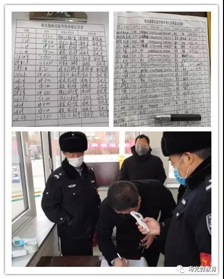 学校制定了严格的出入制度,封闭学校大门,外来人员与车辆一律禁止入校,学校为门岗以及值班室准备了红外线体温计,校内人员以及师生进入校园时必须进行体温测量并填写信息,由值班人员做好记录。