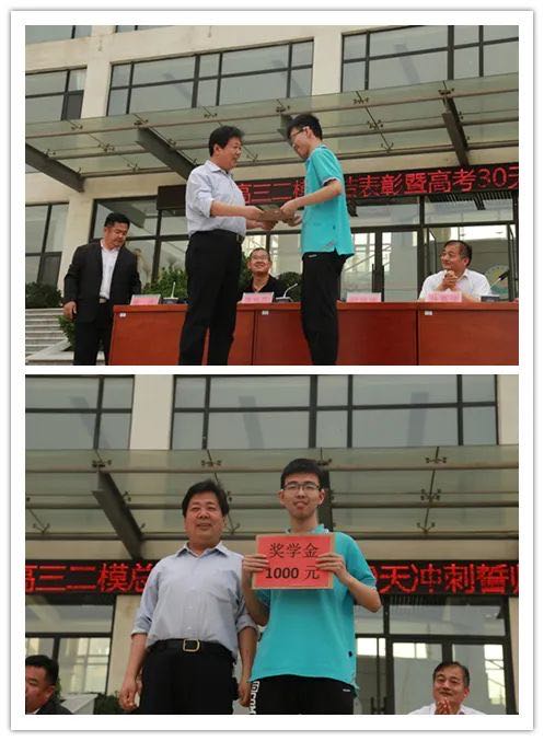 大会对在潍坊市二模考试中表现突出的学生进行了表彰奖励。在本次统考中,王城丰同学取得了潍坊市第14名、寿光市第4名的好成绩,王全瑞、马子力、孙晓彤、黄树志、陈韦润、徐晓凤等六位同学进入寿光市前100名。