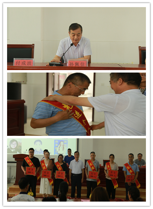 孙佩信副校长宣读特殊贡献团队奖以及优胜年级主任,并向获奖人员颁奖。