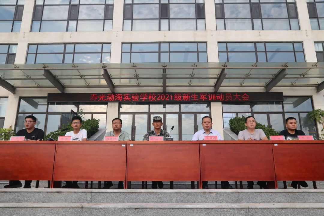 高一年级王涛主任作军训开营仪式致辞,他首先向进入渤海实验的新高一全体学子表示了最诚挚的欢迎和衷心的祝贺,向参加本届军训的全体教官表达了最真挚的谢意。