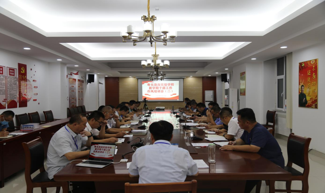 为进一步强化学校干部队伍建设,提高干部管理能力,进一步明确新学期工作重点,凝聚发展共识,自9月5日开始,寿光渤海实验学校连续召开三期全体党员干部工作作风培训会,学校党支部书记、校长梁本江同志作“转作风、明责任、提标准,在高起点上迈入发展快车道”为主题的报告,带领学校干部重温全市教育系统大力倡树“严真细实快”文件要义,对领导干部作风与能力建设从政治觉悟、党性修养、使命担当、格局境界、乐岗敬业五个方面提出明确要求。