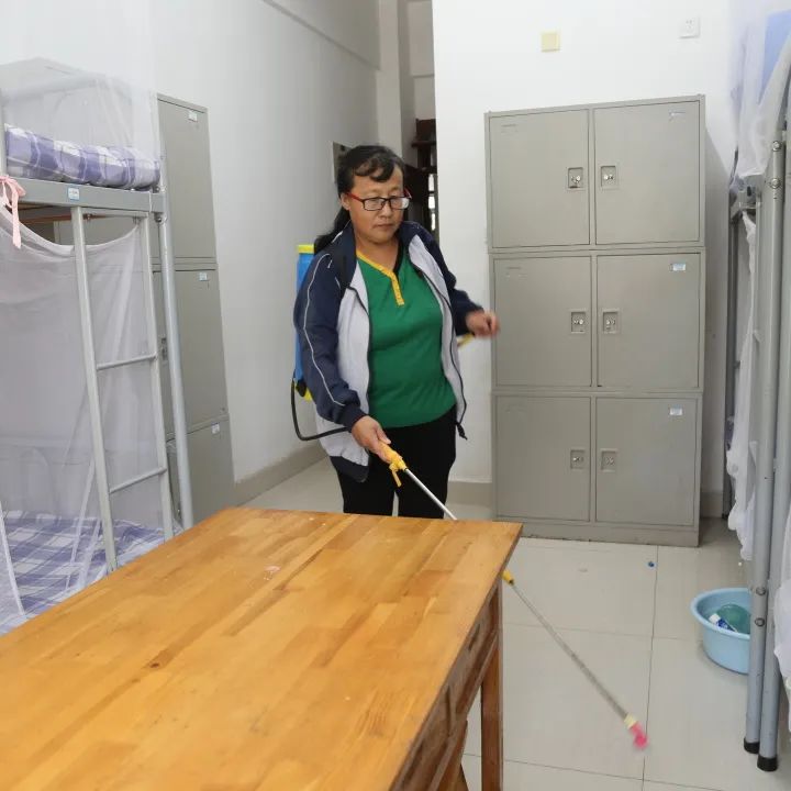 3.为给师生创造一个干净舒适的工作学习环境,物业人员对办公楼、教室、宿舍楼、餐厅的厕所、楼道等重点位置进行彻底消毒,清理卫生死角。