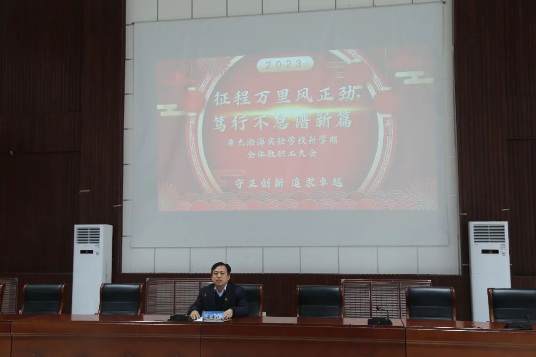 凝心聚力赋新能,求真务实开新局。为全力协调安排好新学期各项工作,营造良好的教学氛围,2023年2月3日,寿光渤海实验学校召开2023年全体教职工大会,学校党支部书记、校长梁本江主持会议并讲话,全体教职员工参加会议。