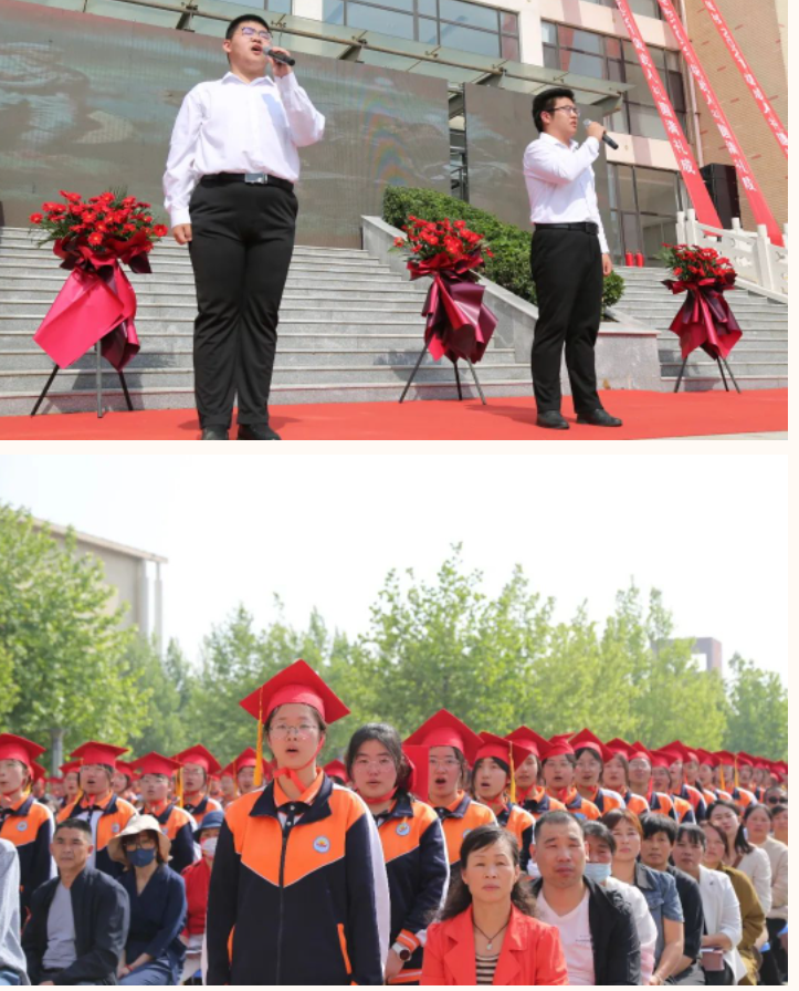 誓言不朽,气势如虹。在朱相泽同学带领下,全体学生举起右拳,喊出对国家、对自己的誓言。肺腑之声,让人热血沸腾,铮铮誓言标志着他们正式步入成年人的行列,表达了他们为家、为国之奉献的决心。