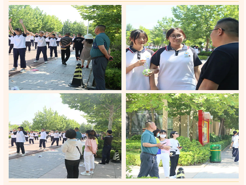 下课铃声响起,家委会成员们随着学生们整齐的队列,有序的参与大课间的课间操活动。看着充满活力、元气满满的学生们整齐划一的做着课间操,家委会成员们露出了欣慰的笑容。