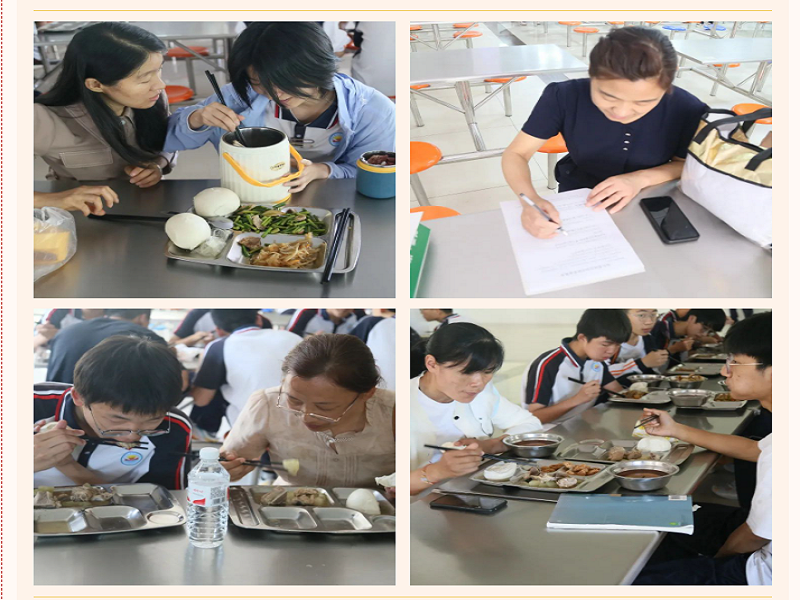 上午的参观流程结束后,为增进家长对学生饮食情况的了解,学校邀请家委成员与学生们共进午餐,餐后就营养搭配、饭菜口感展开了有效沟通并对家长所提出的建议进行认真记录,让家长们感受到了学校对学生饮食健康的重视,对孩子在校的饮食安全更加放心。