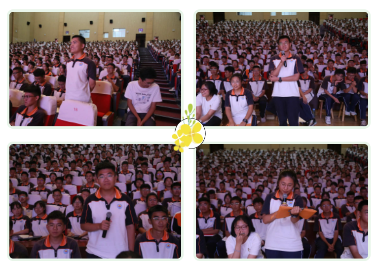 山东大学王新兰、西南大学丁文淇、武汉理工大学崔在飞、中南财经政法大学王姝四位同学也纷纷登台,向师弟师妹们分享各自精彩丰富的大学生活,并就现阶段的学习提供方法和建议。话语中,他们时时感念学校、感念师恩,衷心祝愿师弟师妹们都能取得骄人成绩,金榜题名,不负栽培,不违已愿,再创佳绩。