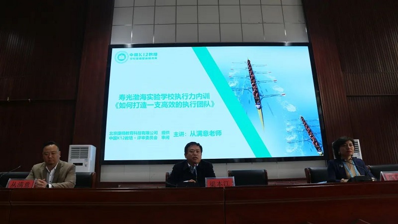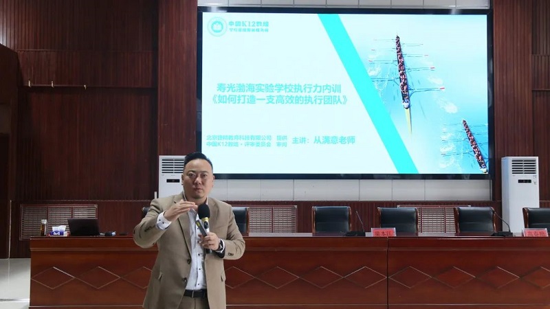 为进一步加强我校干部职工队伍建设,提升干部管理能力和责任意识,鼓足干劲,振奋精神,11月14日上午,我校邀请中国K12教培在学校报告厅开展了一场”如何打造一支高效的执行团队”的培训活动。学校干部管理团队成员85人参加了此次培训。 在K12教培高春艳老师趣味的互动与游戏环节结束后,寿光渤海实验学校执行力培训正式开始。 本次培训的主讲老师为从满意老师。从老师是K12教培首席讲师、国内顶尖企业培训师、国内多家企业集团管理顾问,也是一位年轻的执行力管理专家,他常年致力于学校管理模式和团队执行力的研究工作,并取得了很大成果。 从满意老师从中国学校管理现状、什么叫执行、不做结果的根源是什么、学校中三大执行假象、做好结果的外包思维、影响执行的三大障碍等六大板块进行了详细的讲解,重点阐述了责任管理、制度执行和危机意识三大方面影响执行力的因素。 从老师的语言深入浅出、幽默风趣,既有理论高度,又有可操作性,实现了理论与实践的完美结合。从老师与干部职工频繁互动,精彩的演讲,时时赢得阵阵热烈的掌声。 三个多小时的培训课程,令所有在场的干部职工回味无穷、深受启发。这次培训对统一思想认识,提升广大干部职工执行力,增强团队凝聚力,推进学校高效能发展具有重要意义。 梁本江校长作总结发言。梁校长对从老师精彩的讲解表示感谢,他指出,执行力是一个学校高效运行的保证,而学校管理团队是学校工作的先行者,是广大教职员工效仿的对象,管理团队能否具备高效的执行力是学校教育事业成败的关键所在。当前学校的发展已经进入了一个新阶段,面对严峻外部环境的变化与考验,学校管理团队要坚持“师生至上、开拓视野、讲求效率、执行有力、担当有为”,既要有“想干事”的决心,还需要不断锤炼自身“能干事”“敢干事”“干成事”的能力、勇气和信心。全体干部职工要以此次集中培训为契机,继续强化日常制度化、规范化、精细化的工作要求,为学校的高质量发展奠定良好基础,续写渤海实验学校新的辉煌。 本次培训会,让全体干部职工在今后工作中如何进一步提升团队执行力,如何打造更强劲的团队协作能力,如何克服内在障碍、提升自我有了更加深刻的认知与感悟,为学校各项工作的顺利开展打下坚实的基础。寿光渤海实验学校全体干部职工在未来的工作中一定会奋力拼搏、勇毅前行,推动学校各项工作再上新台阶,谱写学校发展的新篇章。