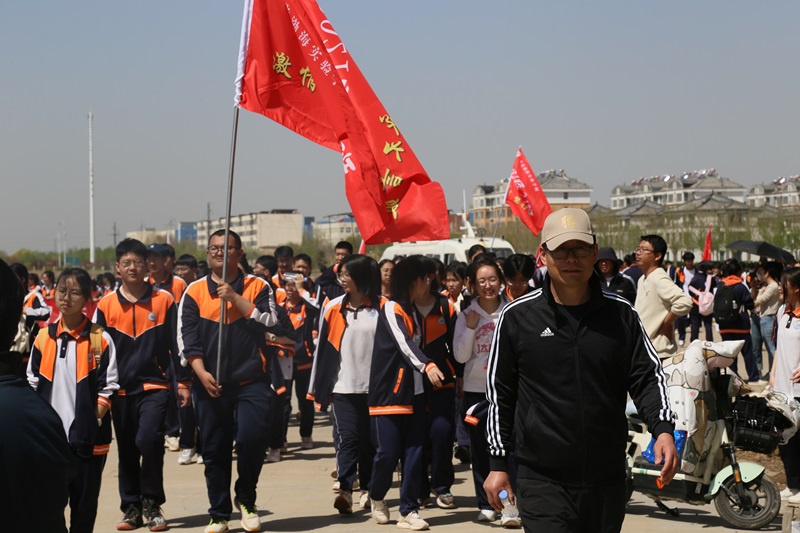 班旗飘飘,歌声朗朗,踏一路微风,携半缕春光;伴绿意同行,览碧波荡漾。春游队伍宛如长龙蜿蜒,向着水德园环湖公园前进。同学们在欢声笑语间携手前行,这是青春最美的模样。