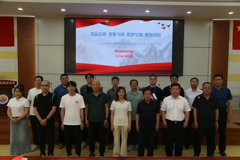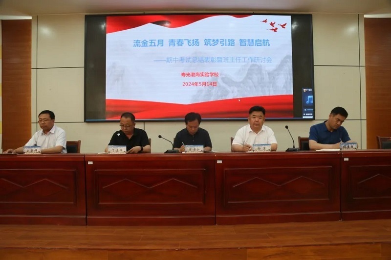 教育泽流及远,担当深耕不辍。5月14日,寿光渤海实验学校举办了“流金五月 青春飞扬 筑梦引路 智慧启航”为主题的期中考试总结表彰大会暨班主任工作研讨会,旨在总结经验、表彰先进、深化班级管理策略,全面提升教育教学质量。梁本江校长、支部委员徐涛、支部委员杨益祥、校务委员刘英伟及学校高一、高二年级全体班主任共同参加,刘英伟同志主持本次会议。