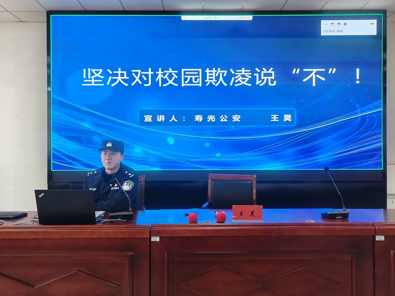 为进一步增强学生的法治观念,提升防诈反诈意识,营造安全、文明、和谐的校园环境,2025年11月28日,寿光渤海实验学校面向高一、高二全体学生举办了一场内容丰富、意义深远的法制讲座暨防诈反诈宣讲活动。我校邀请寿光市公安局羊口分局王昊警官到校为学生作法制教育宣讲。
